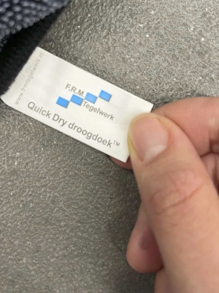 De welbekende FRM Tegelwerk Quick Dry Droogdoek. Ons pareltje uit de collectie.