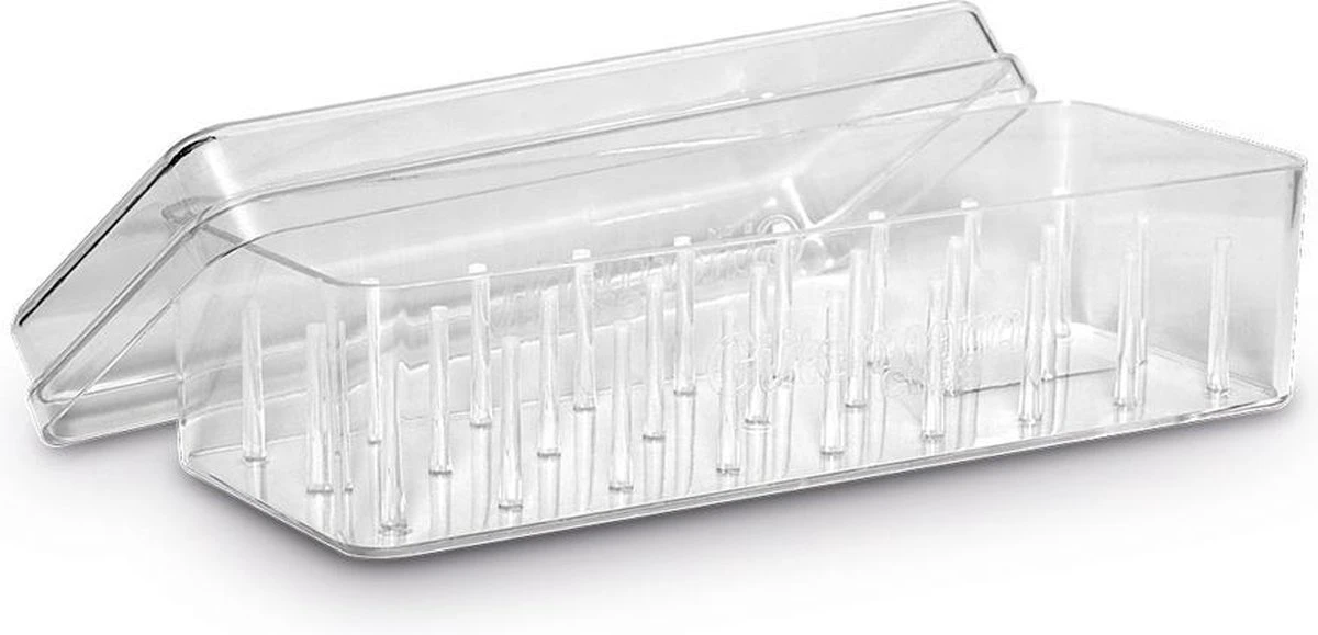 | Verpakkingsinhoud | 1 x Gütermann naaigarenbox, voor 27 klossen Gütermann naaigarenbox, voor 27 klossen, transparant , lege opbergdoos, gemaakt van kunststof Afmetingen: (B) 200 x (D) 78 x (H) 62 mm |