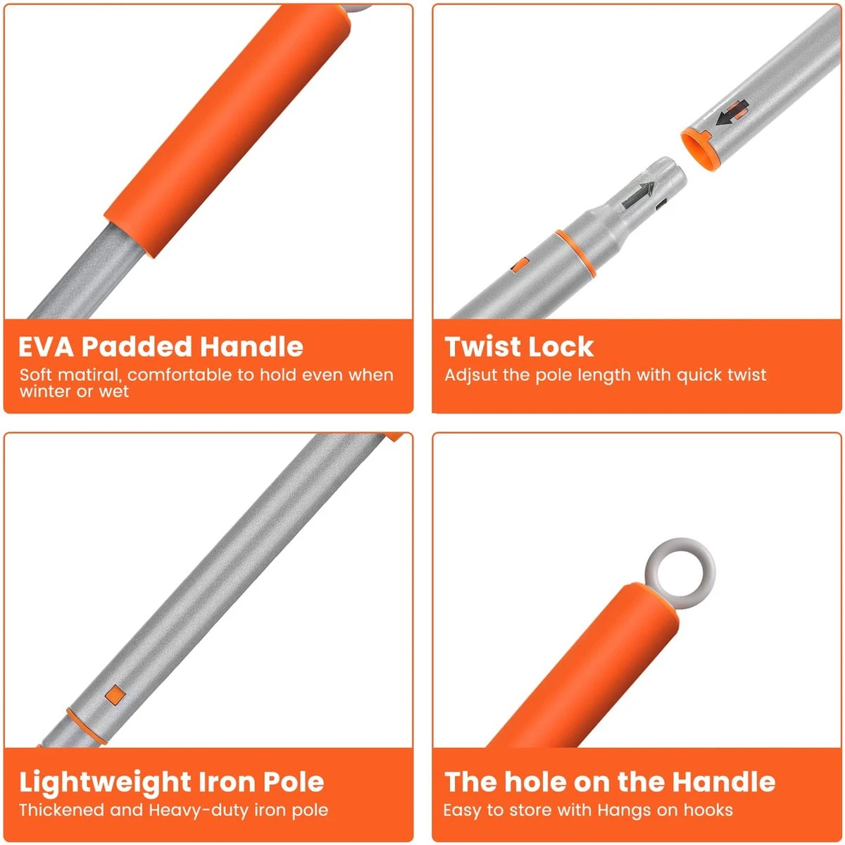 TELESCOPISCHE HANDGREEP EN TAILLE: Deze reinigingsborstel met telescopische handgreep schuift tijdens het draaien van 30″ tot 42″ uit, zodat u niet hoeft te knielen of te bukken om de badkamer schoon te maken.
