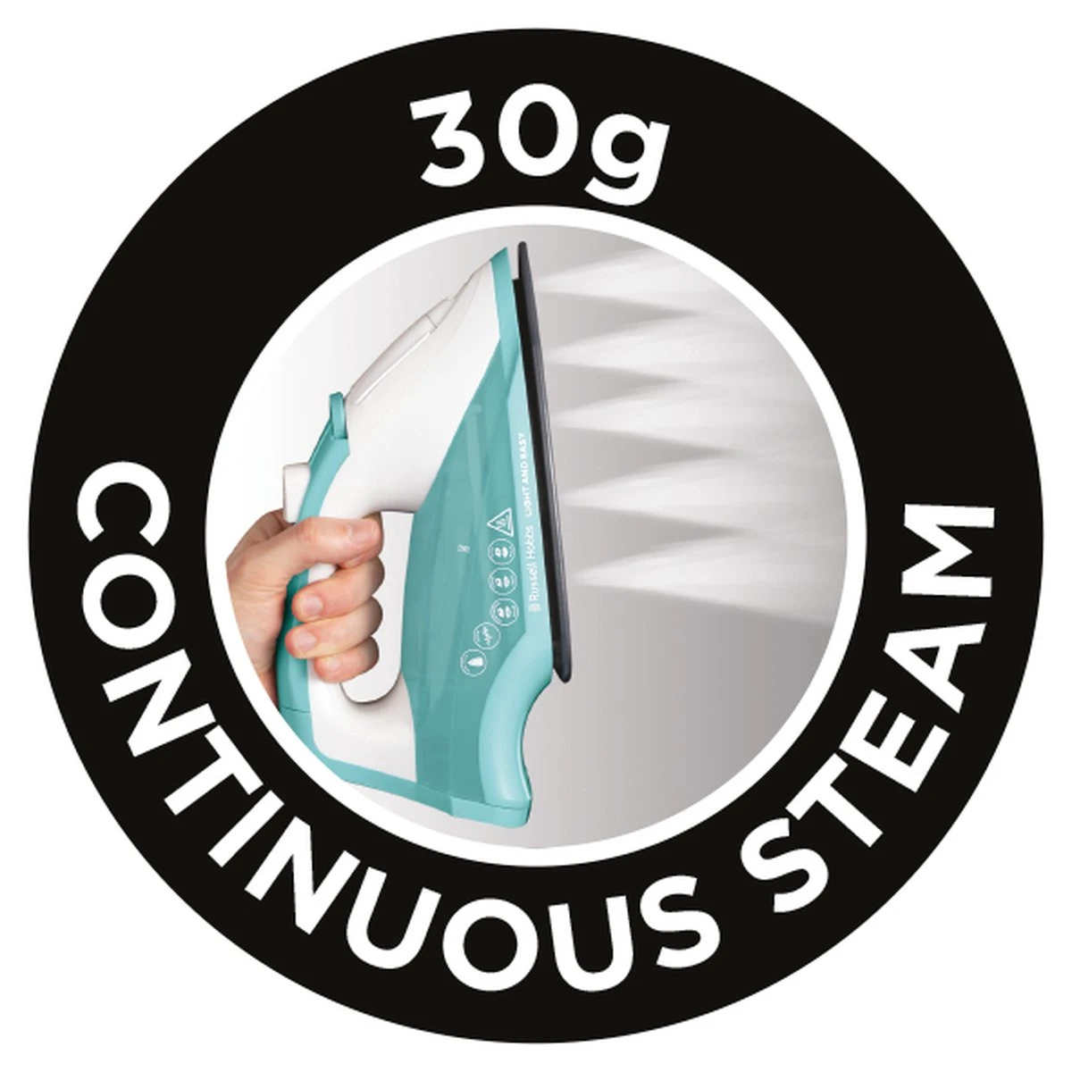 Met 2400 watt biedt dit lichtgewicht strijkijzer voldoende vermogen om de lastigste kreukels glad te strijken.