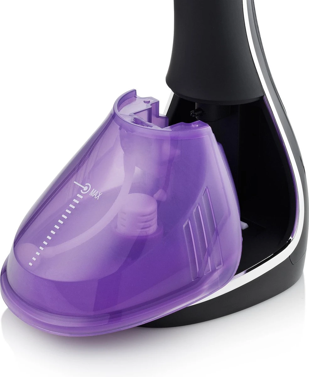 Plug de stekker in het stopcontact en wacht tot het lampje continue brandt. Binnen 45 seconden is de stomer klaar voor gebruik. Na gebruik kun je het afneembare waterreservoir van 0,26 liter weer eenvoudig bijvullen voor het volgende gebruik. Een effectieve en snelle manier om kreuken en vieze geuren te verwijderen.
