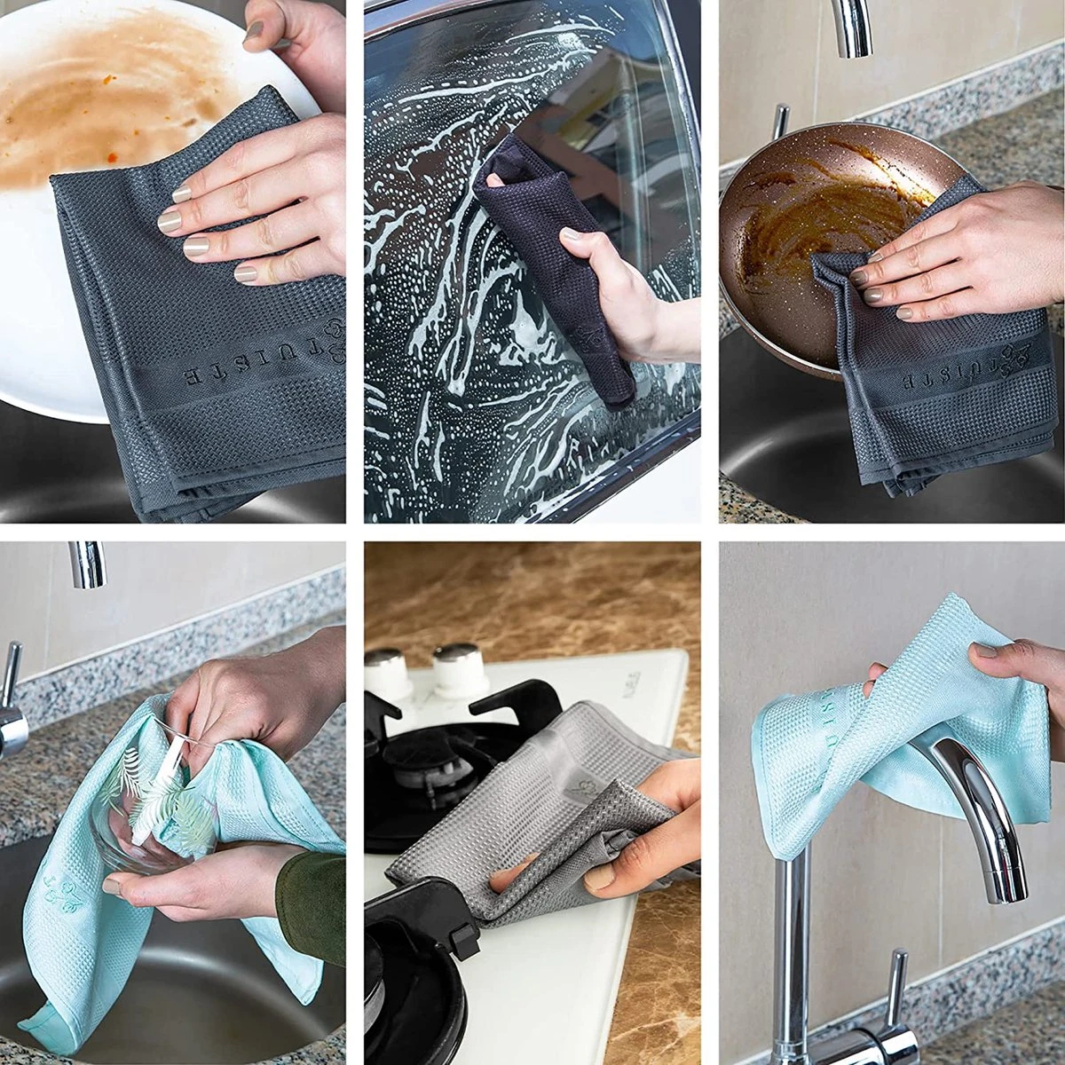 Tuiste Set Van 4, Grijs, Microvezel Microvezeldoeken, Permium Poetsdoeken, Stofdoeken, Nano Poetsdoeken, Micro Magic Magische Doeken, Multifunctionele Reinigingsdoeken, Set Van 4, 37 X 57 Cm